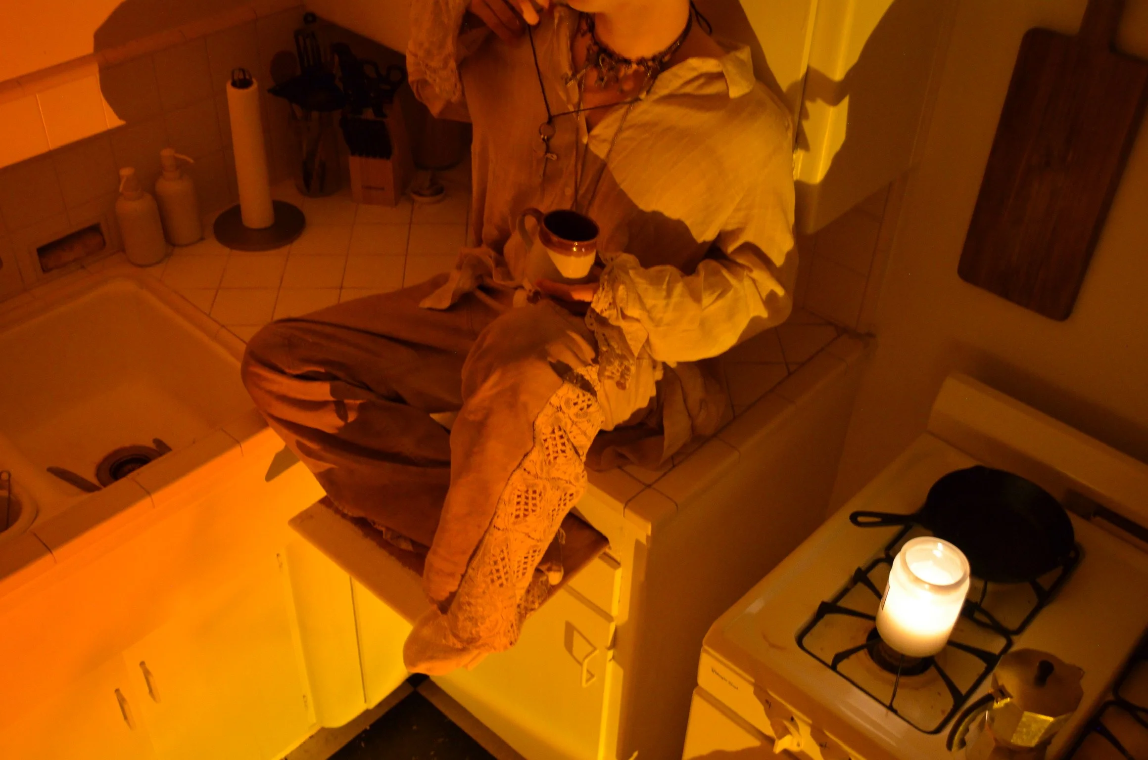 COFFEE STAINEDThis was a side upcycling project I worked on in Fall of 2024, styled and photographed myself. I played around with staining white textiles with brewed coffee to add color and change the style of the item.